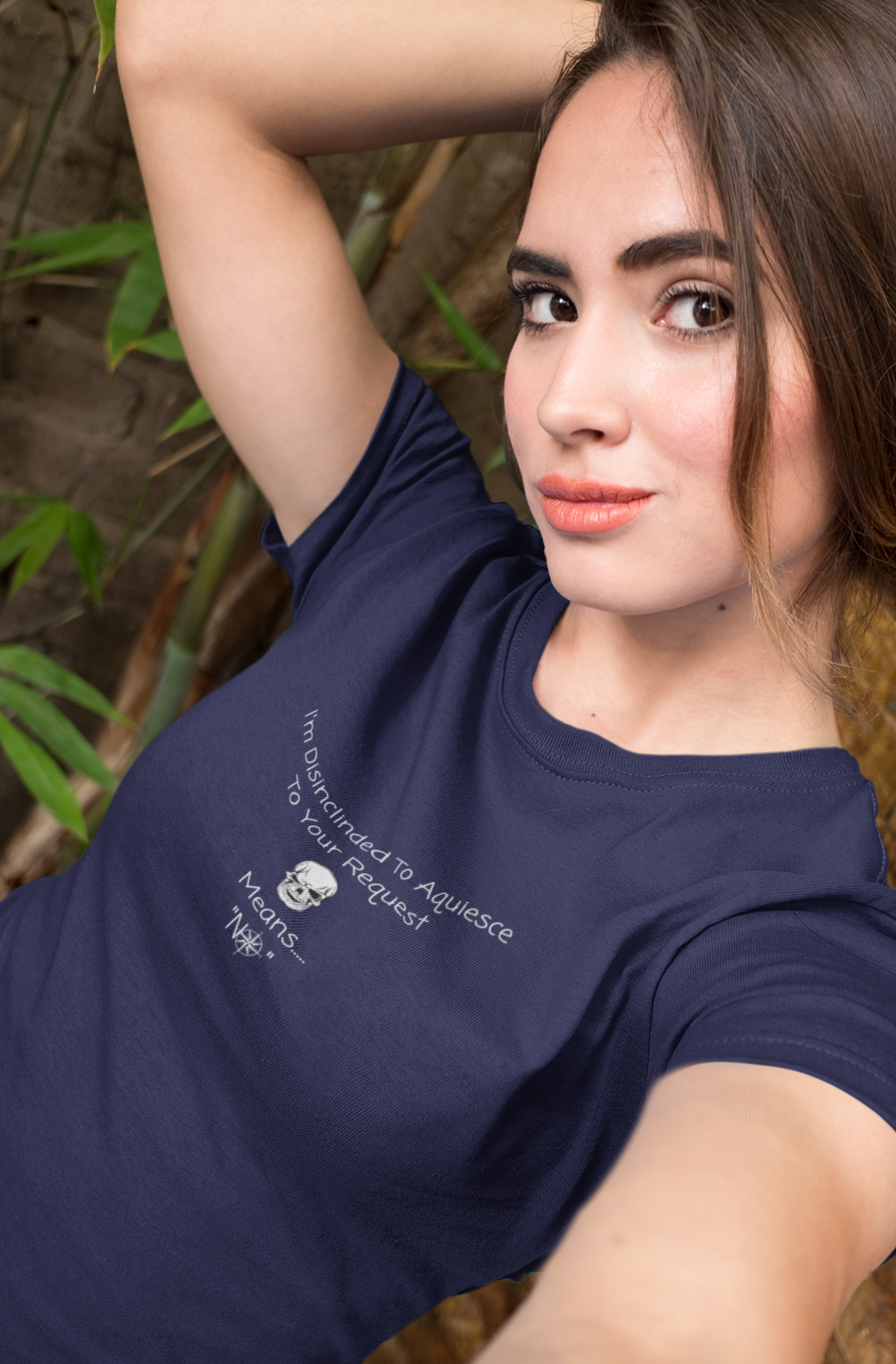 I'm Disinclinded To Acquiesce To Your Request Means NO | Snarky | Funny | Humor | Skull | Mens Womens Soft Unisex Jersey Short Sleeve Tee