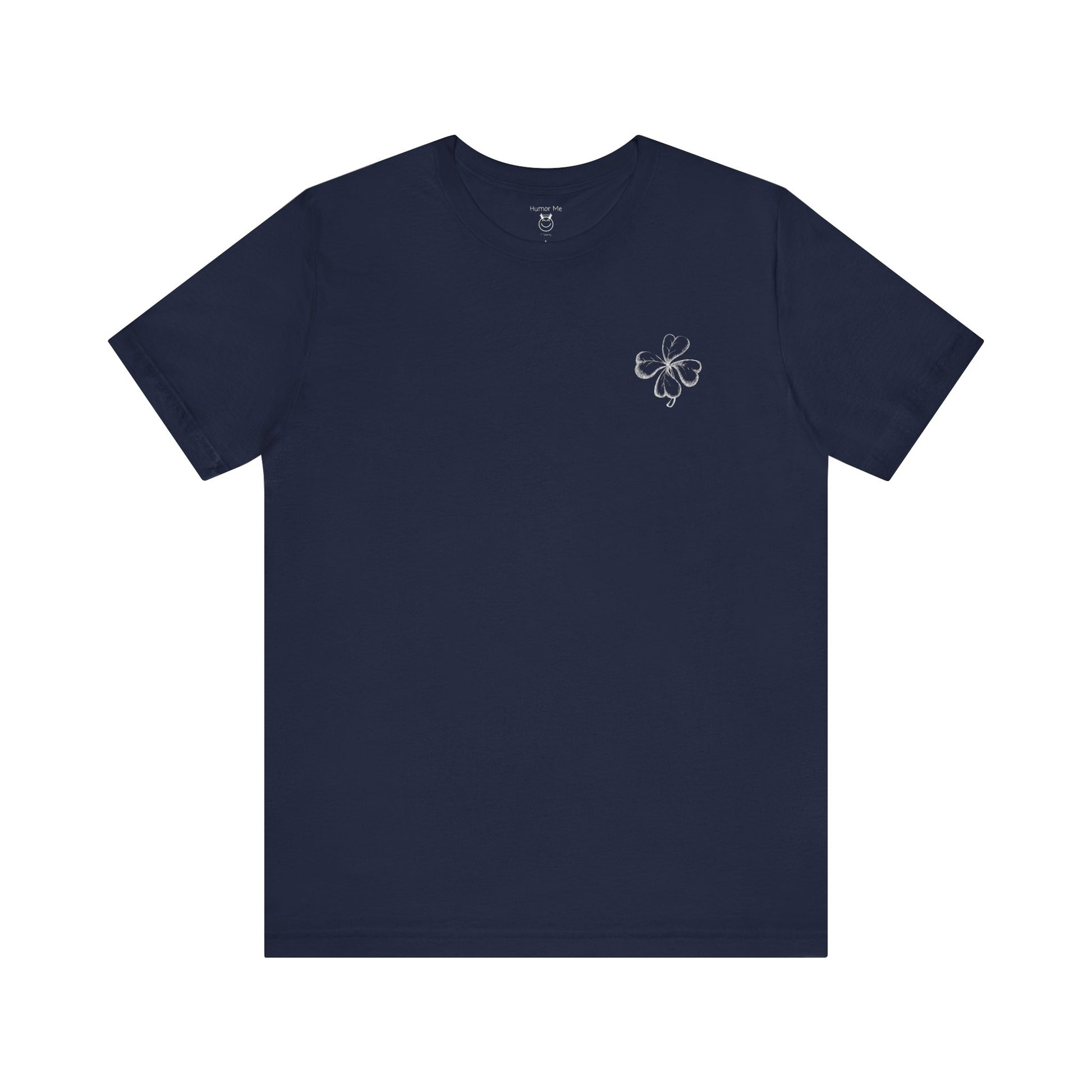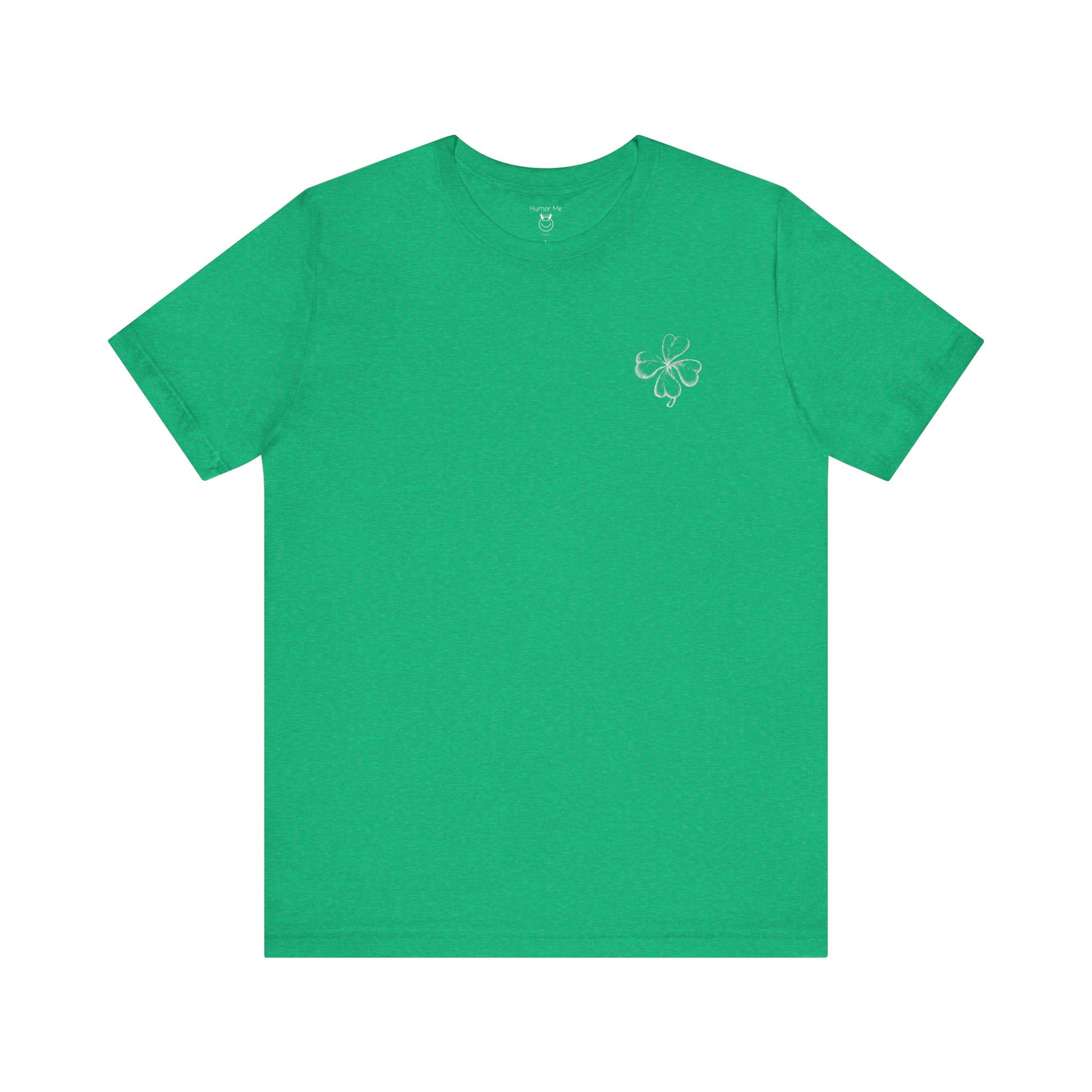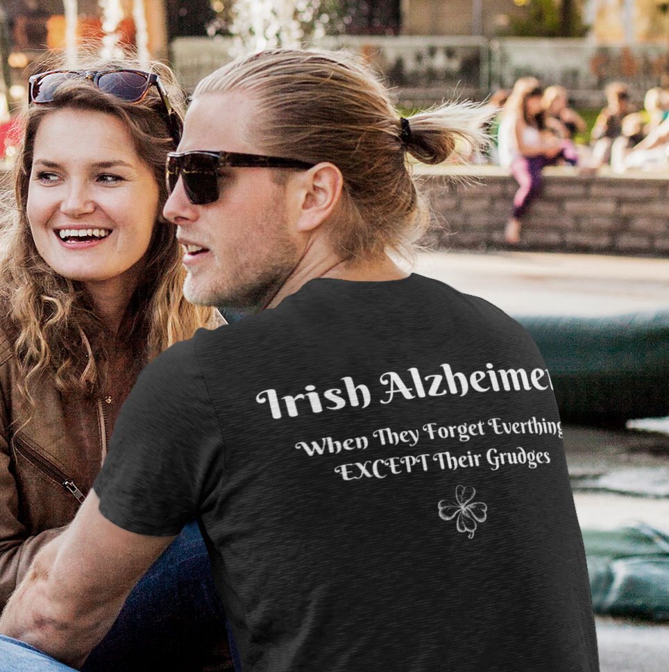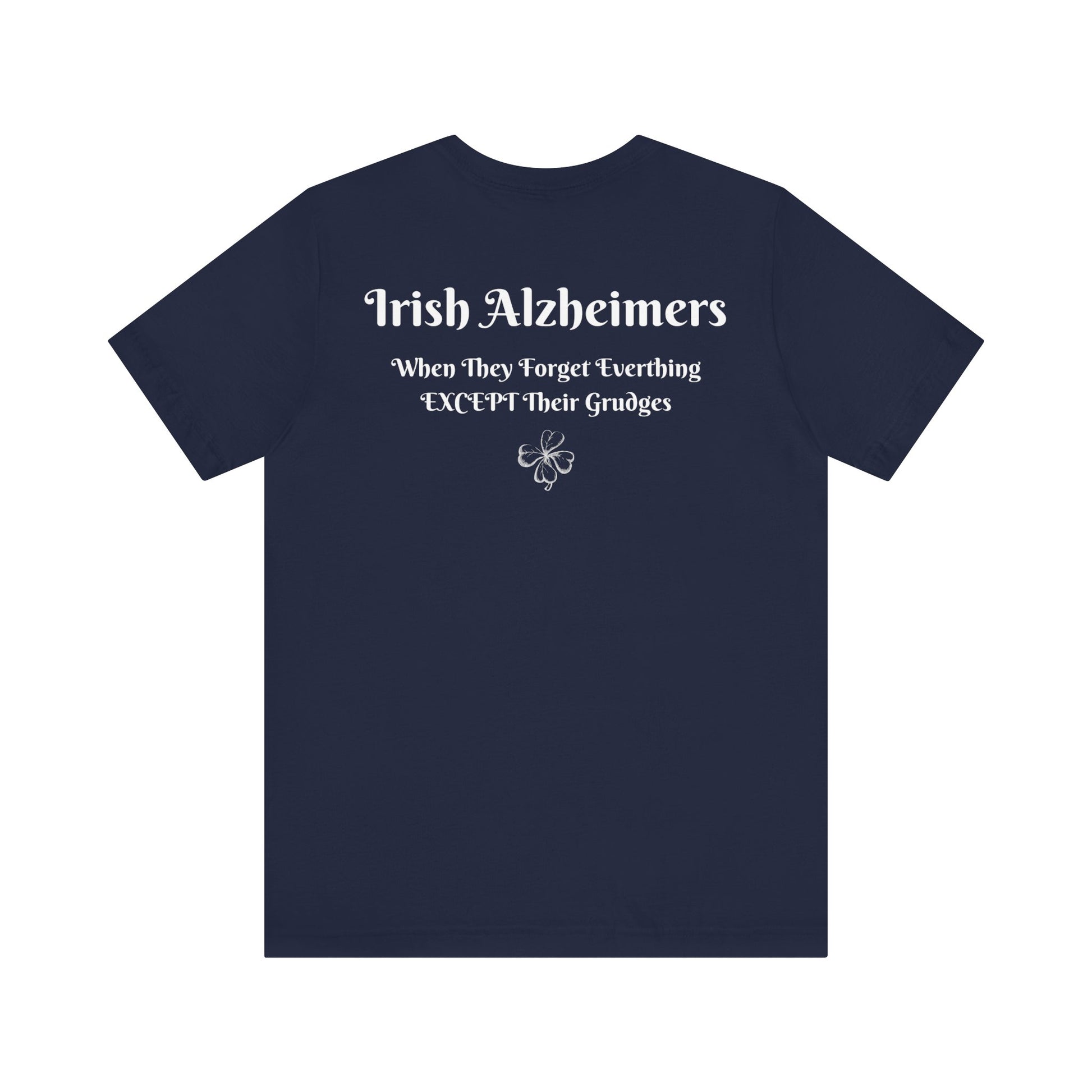 Irish Alzheimers | Lucky | 4 Leaf Clover | Shamrock | Funny | Humor | Design On Back | Mens Womens Unisex Jersey Short Sleeve Tee
