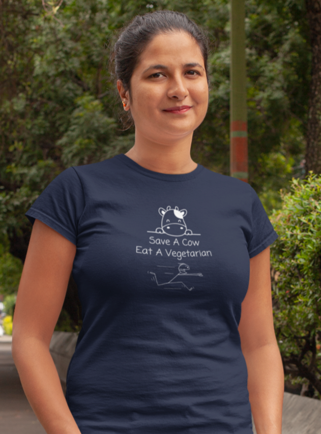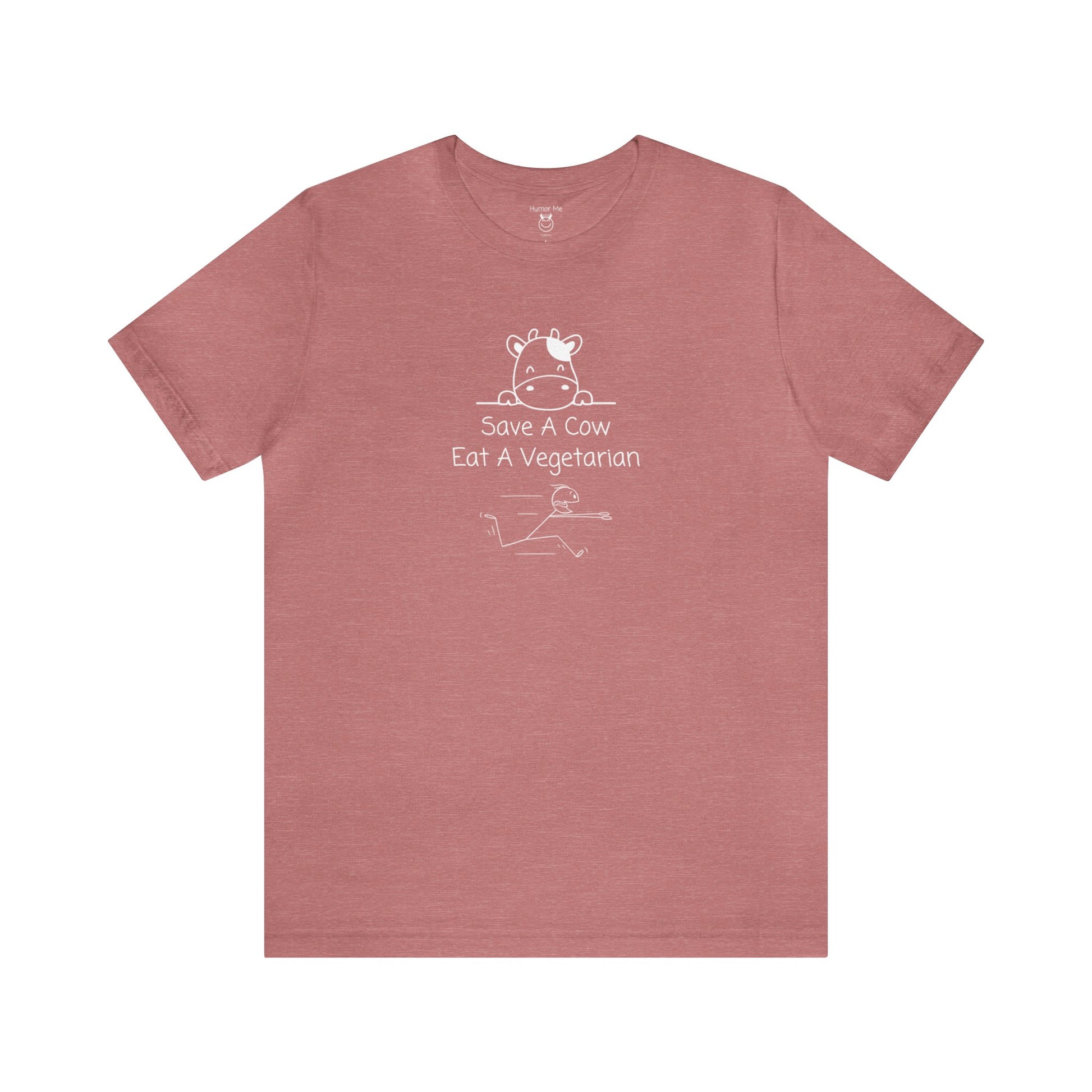 Save A Cow Eat A Vegetarian | Funny | Humor | Cute | Stick Man | Mens Womens Unisex Jersey Short Sleeve Tee